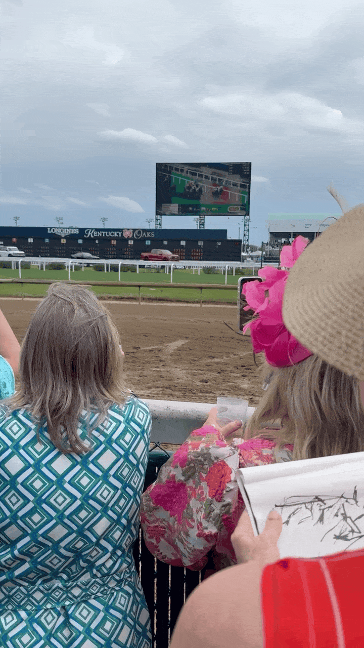 Thanks to Mount Holyoke College Alum friend, Sarah Perkins Thomas, I met Braxton of Royal Oak Horse Farm, Paris, Kentucky. Braxton and her husband Damian invited me into the Churchill Downs Paddock Area and on the rail for the racing. Sketching from this close up view was unforgetable.